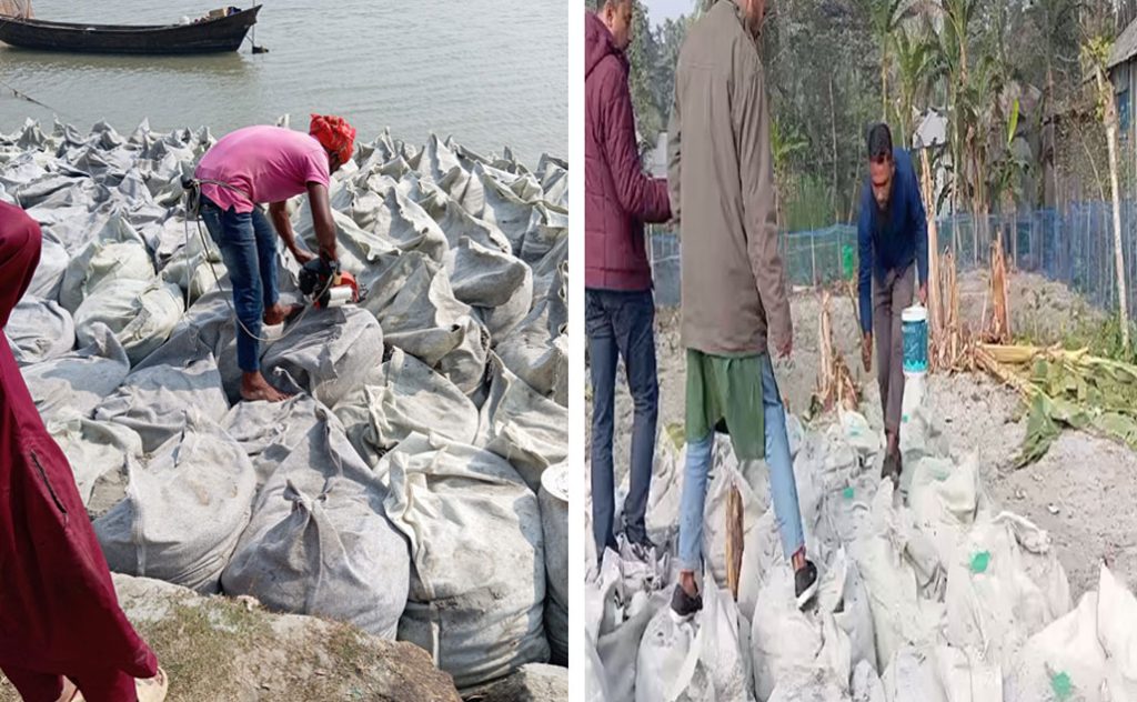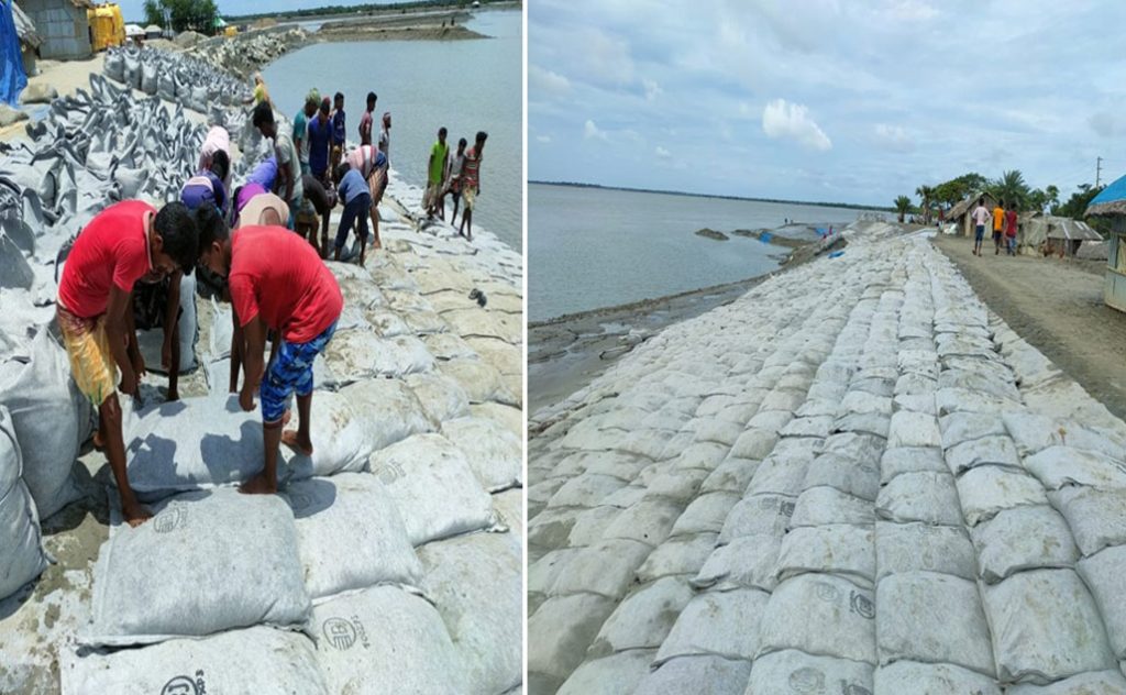 Geo-bag Dumping and Placing on River Bank.